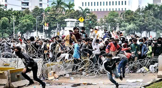 JAKARTA.BM- Aksi damai dari Aliansi Nasional Anti Komunis (ANAK) NKRI di kawasan Patung Kuda, Jakarta Pusat berujung ricuh. Namun, aparat kepolisian menyebut pihak yang memicu kerusuhan adalah kelompok Anarko.